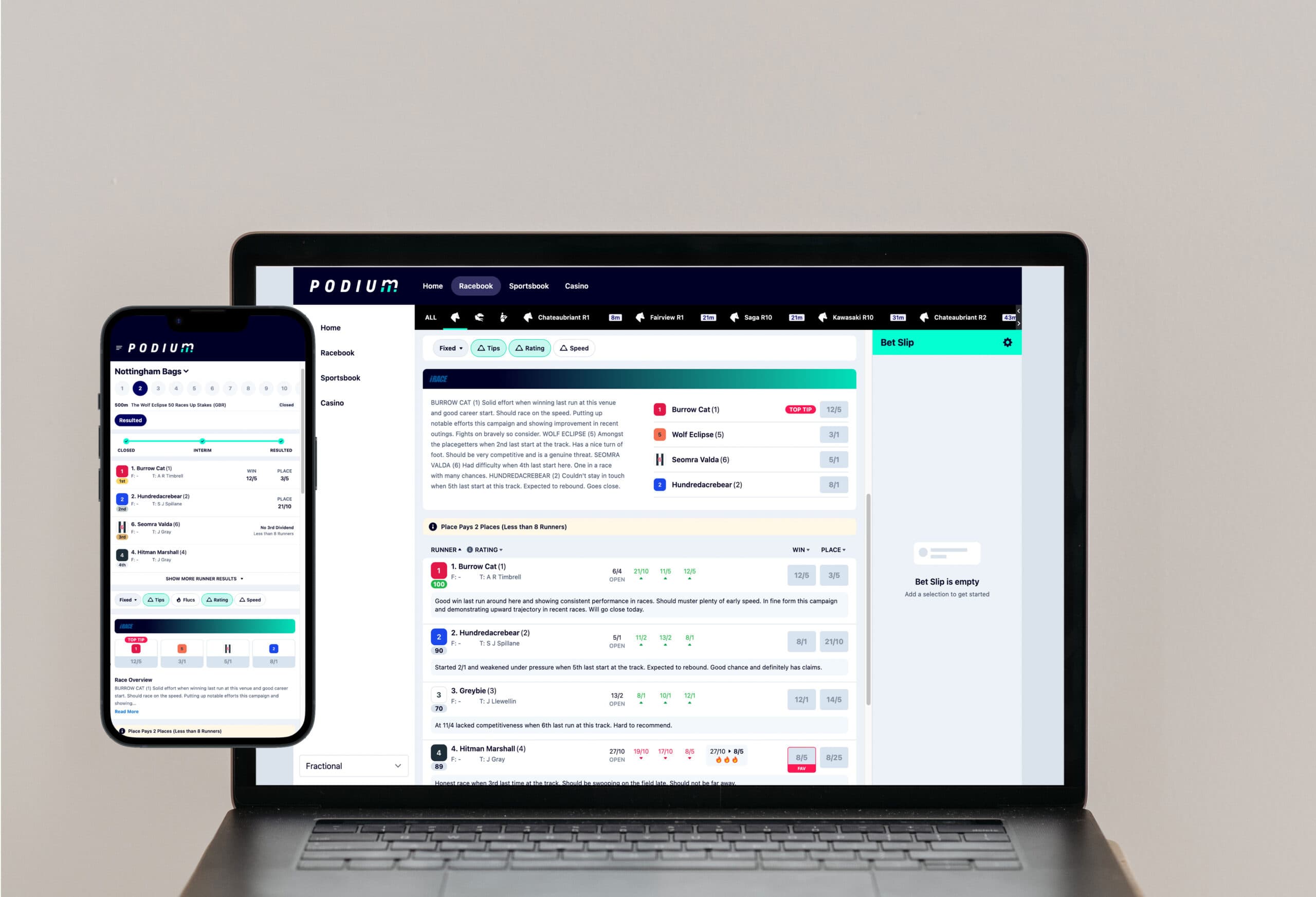 - Se integra perfectamente con su monedero y plataforma existentes para ofrecer una experiencia coherente e intuitiva a sus clientes en todos los deportes y carreras.
